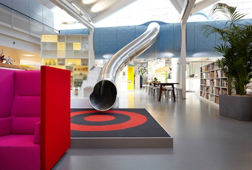 В офисе LEGO в ДанииВ Датском офисе LEGO, сделанном арх бюро Rosan Bosch придумали как необычным способом соединить два этажа.